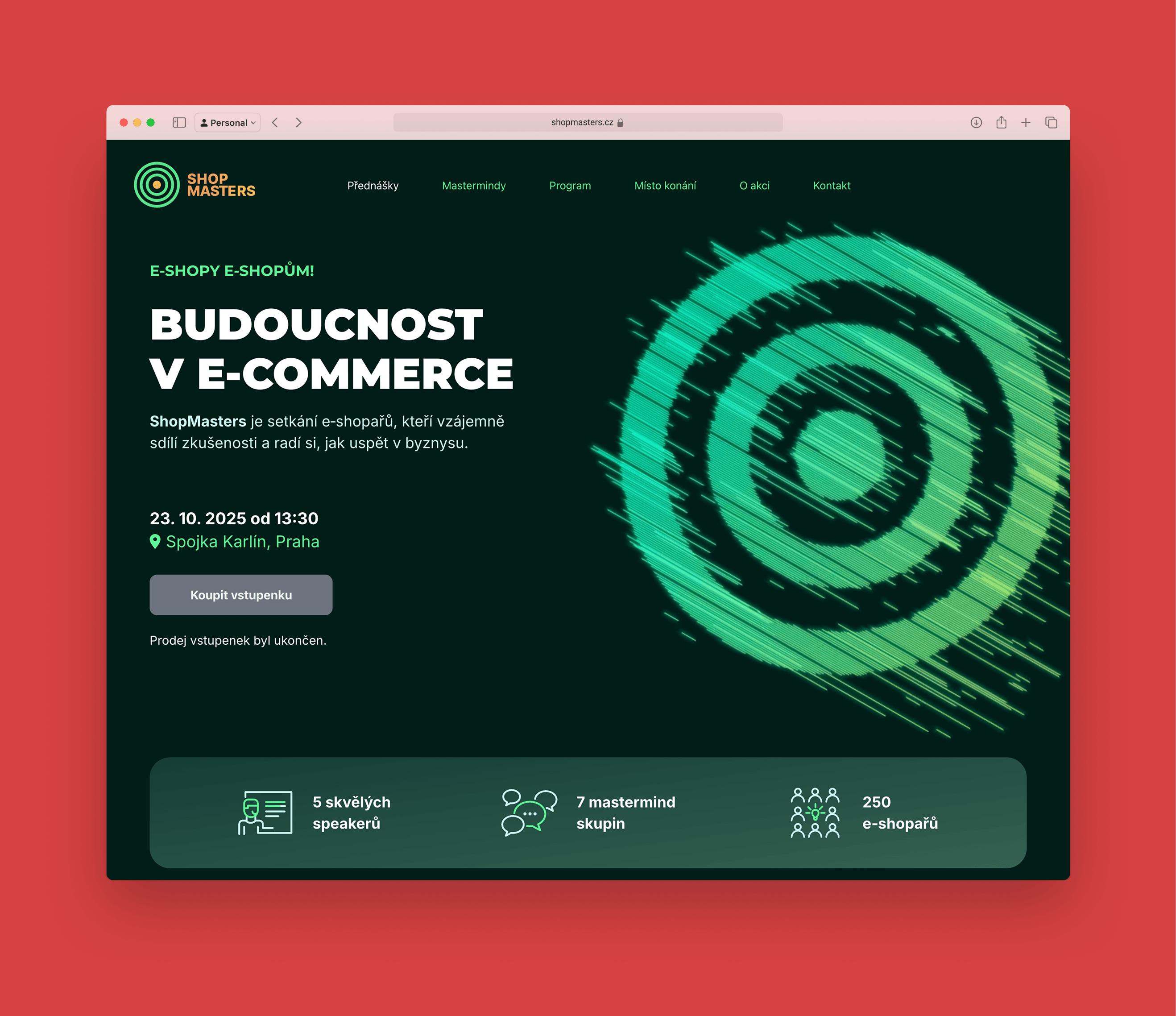 ShopMasters is a comprehensive event platform designed to unite e-commerce professionals through knowledge sharing and networking. The platform facilitates expert-led lectures, interactive mastermind sessions, and community building, solving the isolation challenge faced by online retailers.